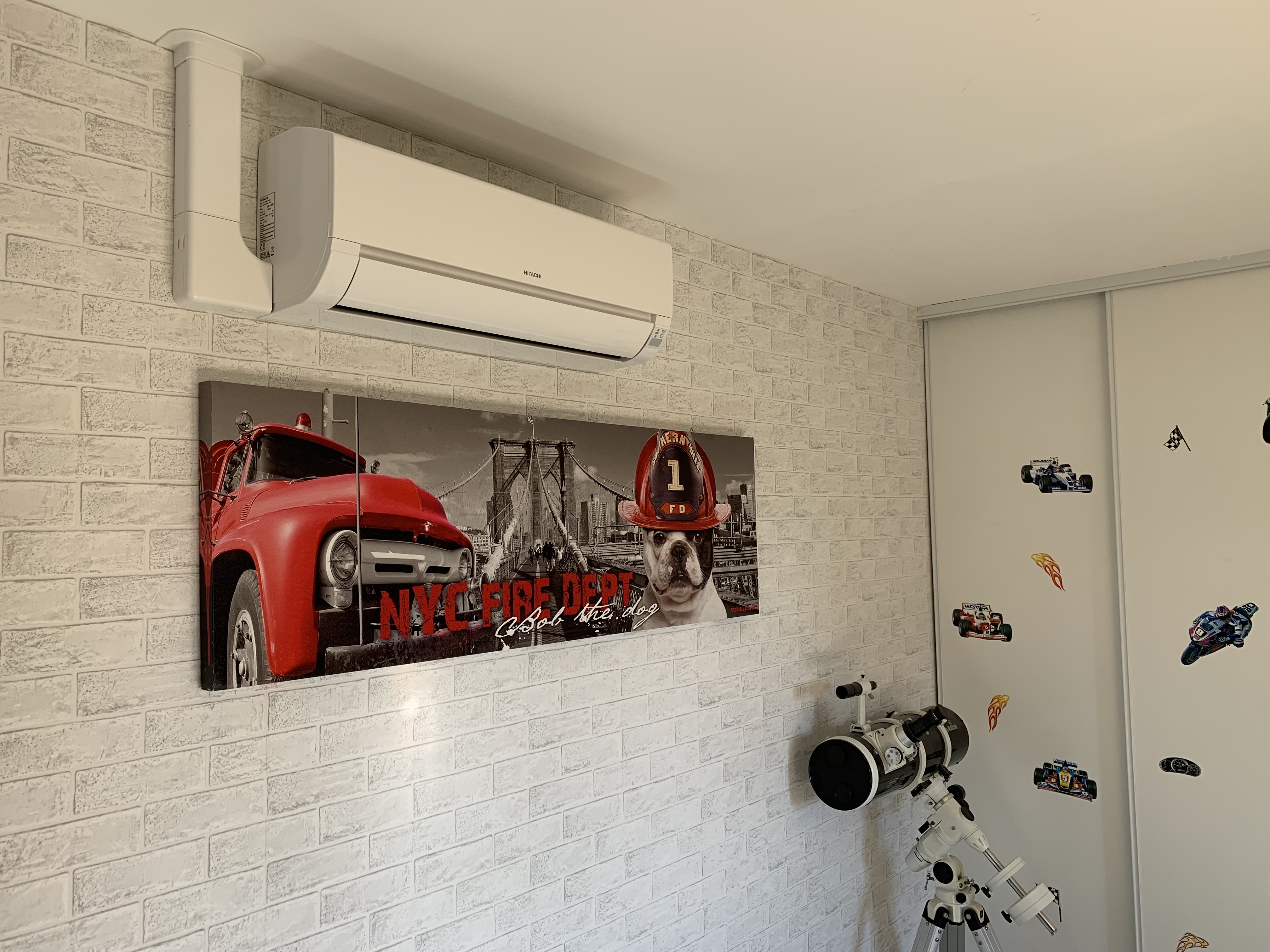 Installation d'une clim dans une chambre. Travail rapide, très propre et equipe très sympathique.